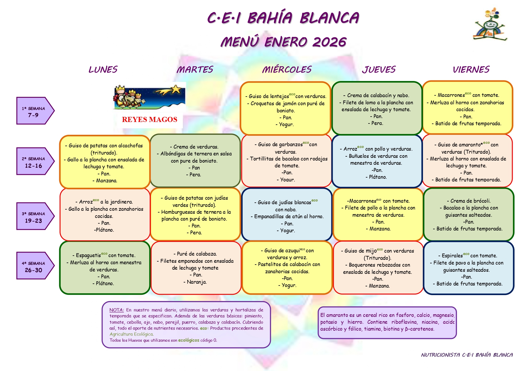 MENÚS GUARDERÍA BAHÍA BLANCA ENERO 2026