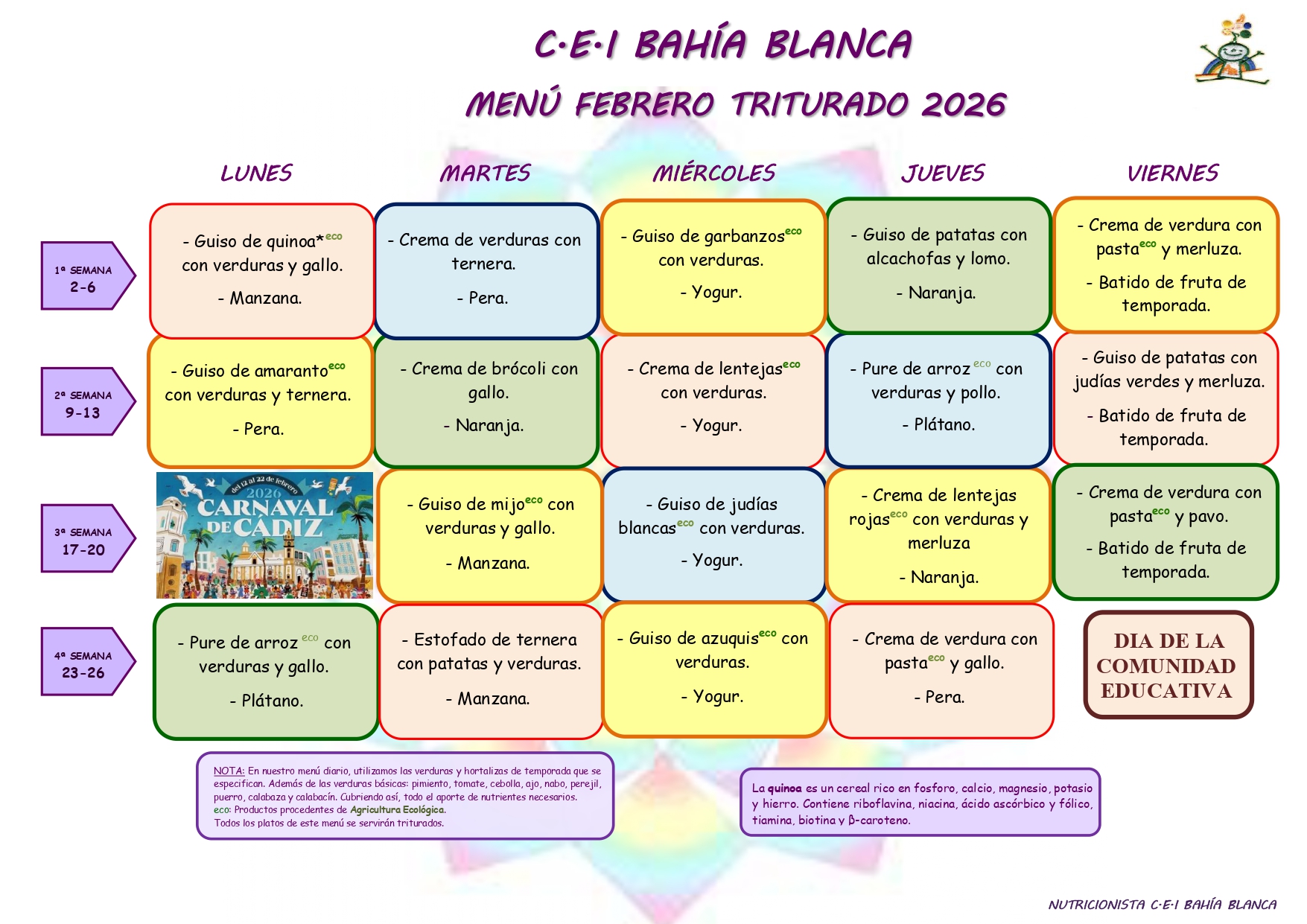MENÚS GUARDERÍA BAHÍA BLANCA FEBRERO 2026