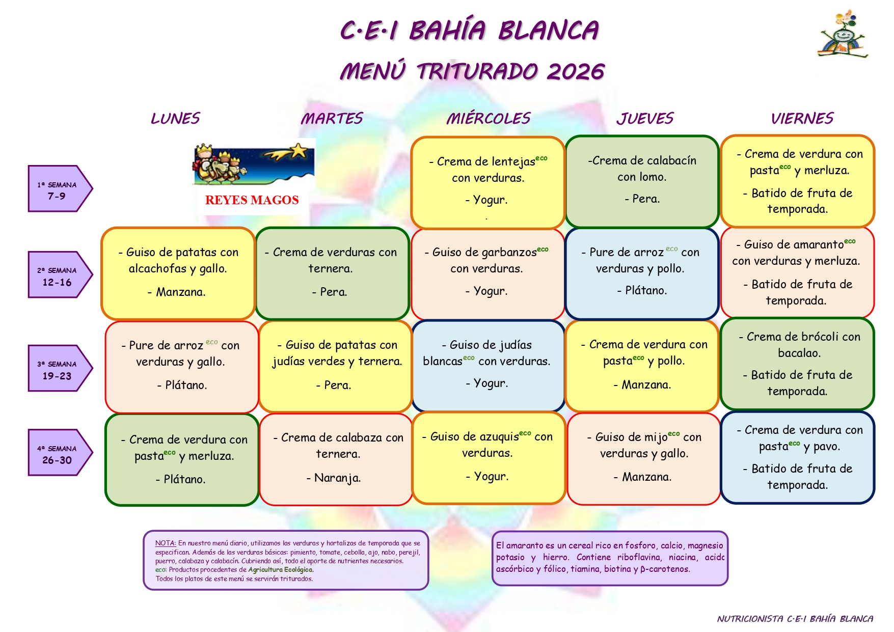 MENÚS GUARDERÍA BAHÍA BLANCA ENERO 2026