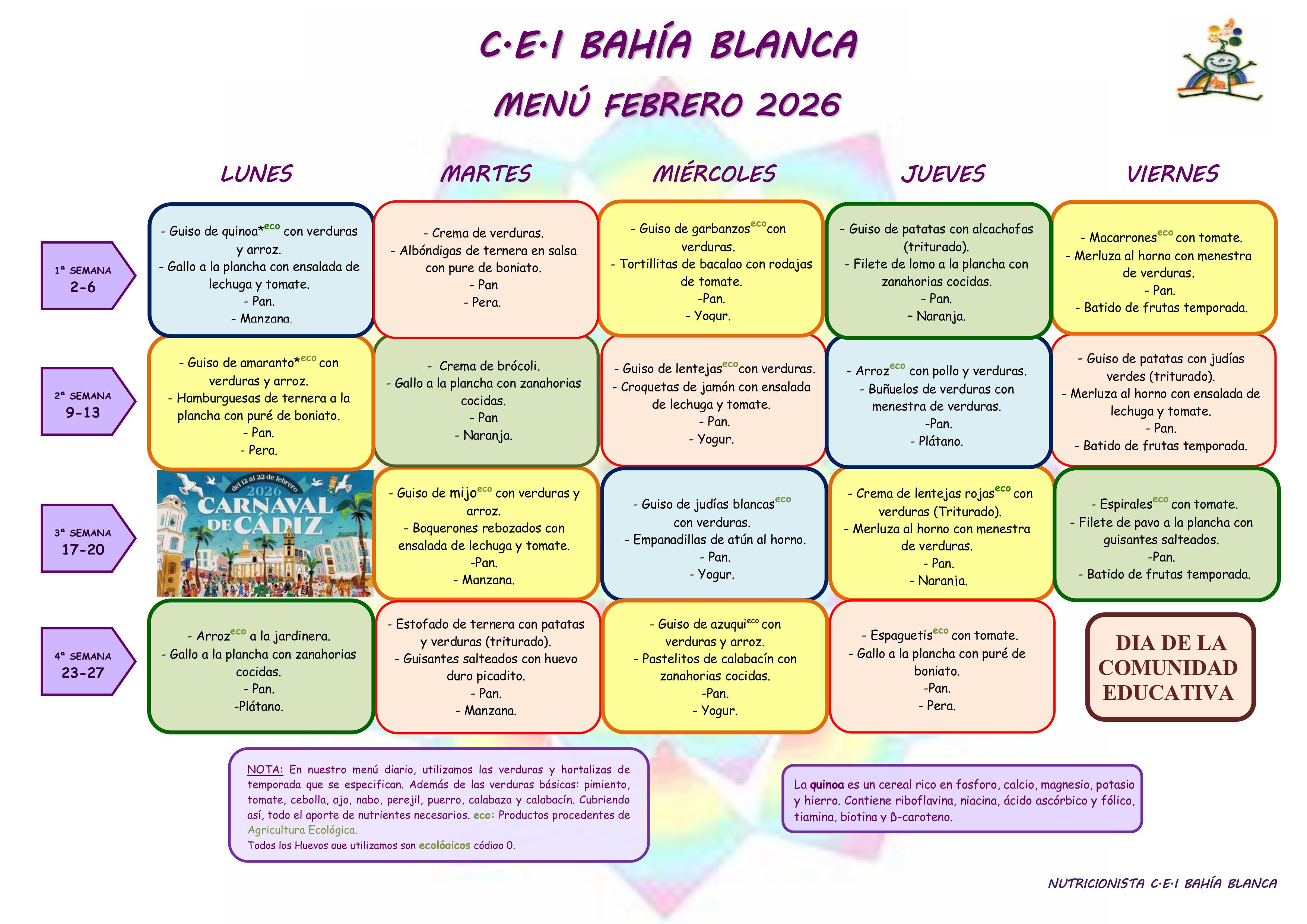 MENÚS GUARDERÍA BAHÍA BLANCA FEBRERO 2026