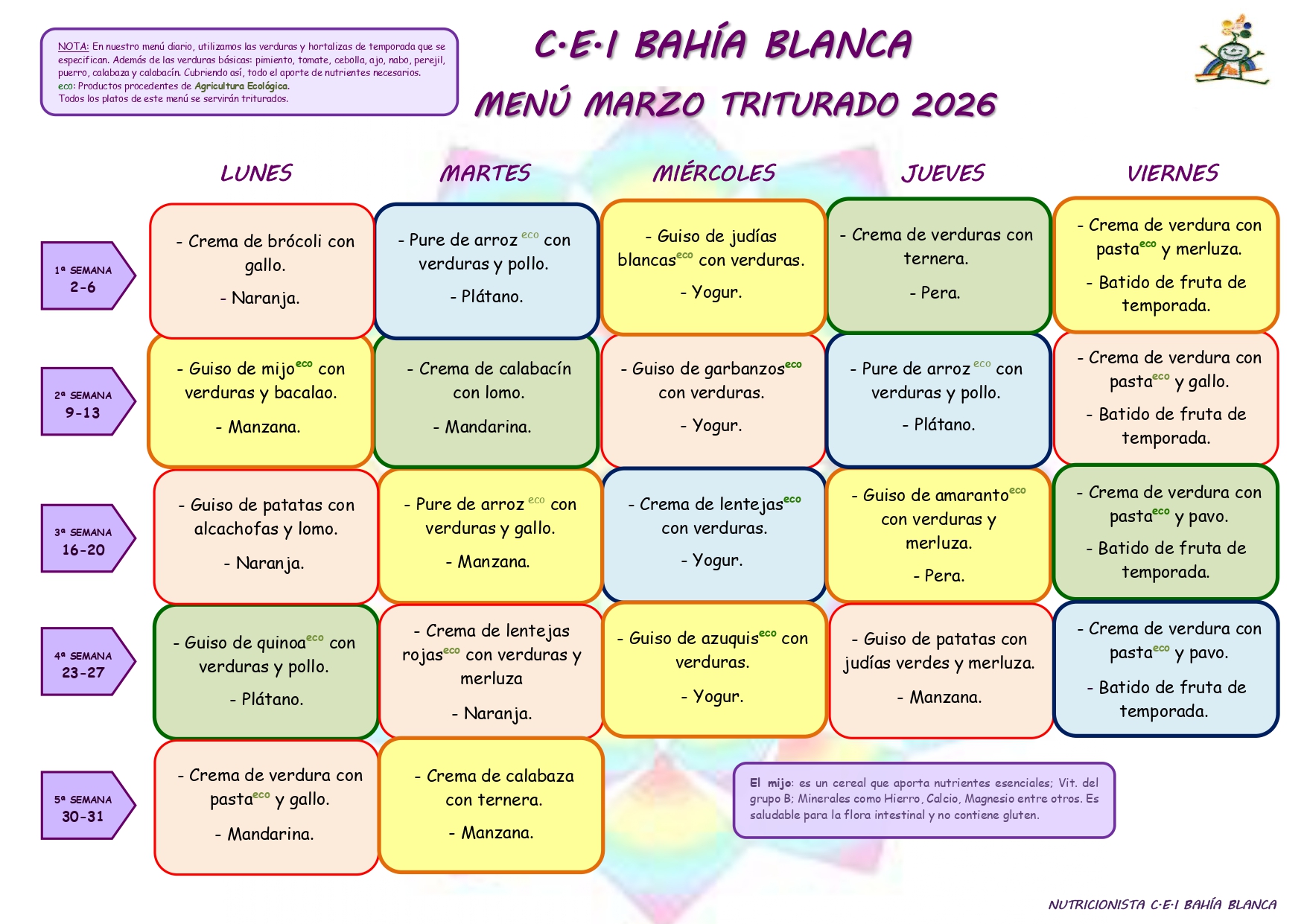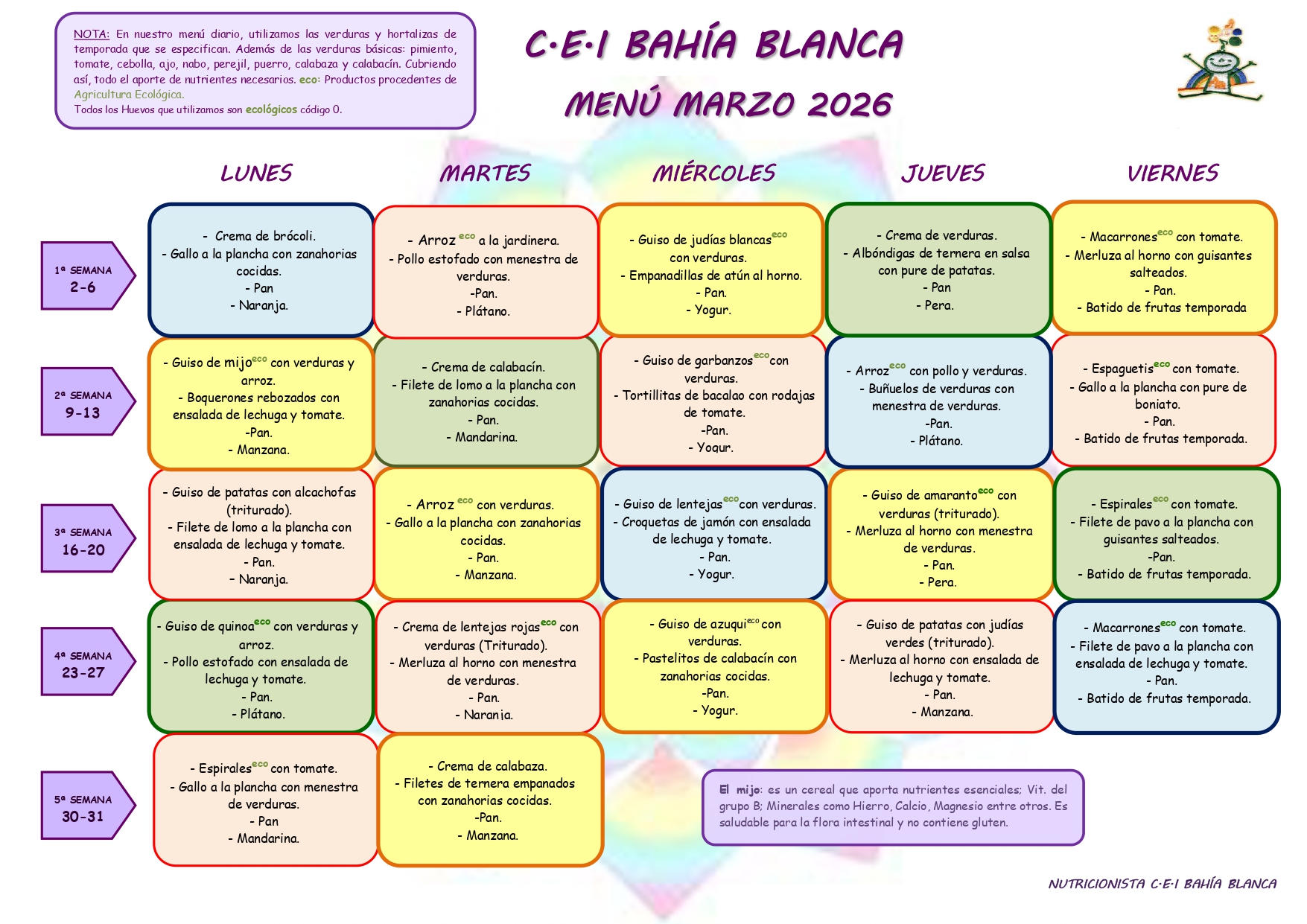 MENÚS GUARDERÍA BAHÍA BLANCA MARZO 2026